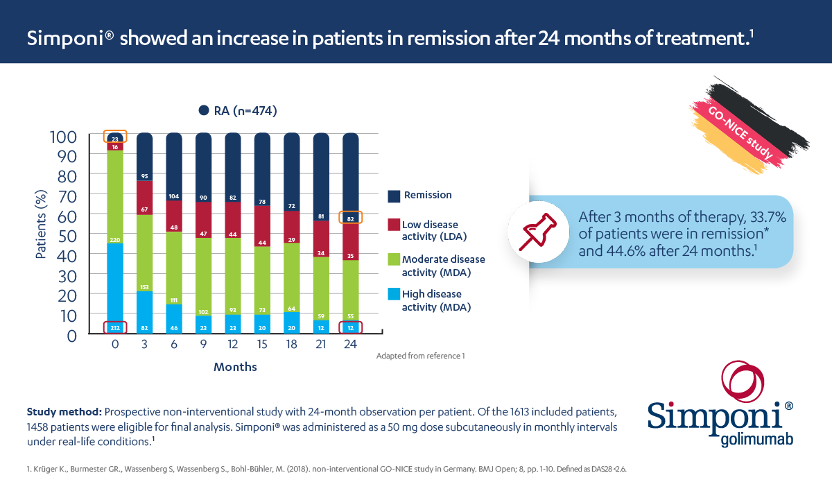 Significant reduction in RA disease activity